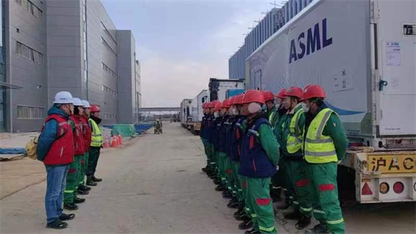 蘇州佳捷搬運(yùn)感恩客戶的信任以及ASML設(shè)備商的認(rèn)可。蕪湖微顯智能科技首臺(tái)ASML光刻機(jī)安全順利搬入再顯佳捷集團(tuán)蘇州佳捷搬運(yùn)施工團(tuán)隊(duì)精密設(shè)備搬運(yùn)工匠鐵軍風(fēng)范。